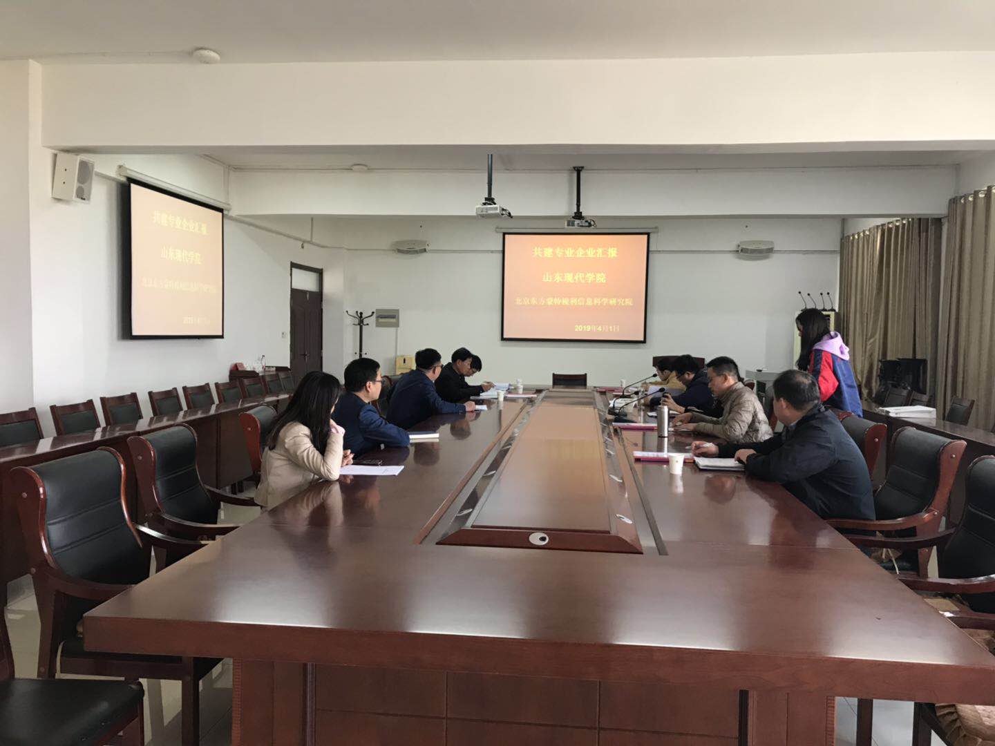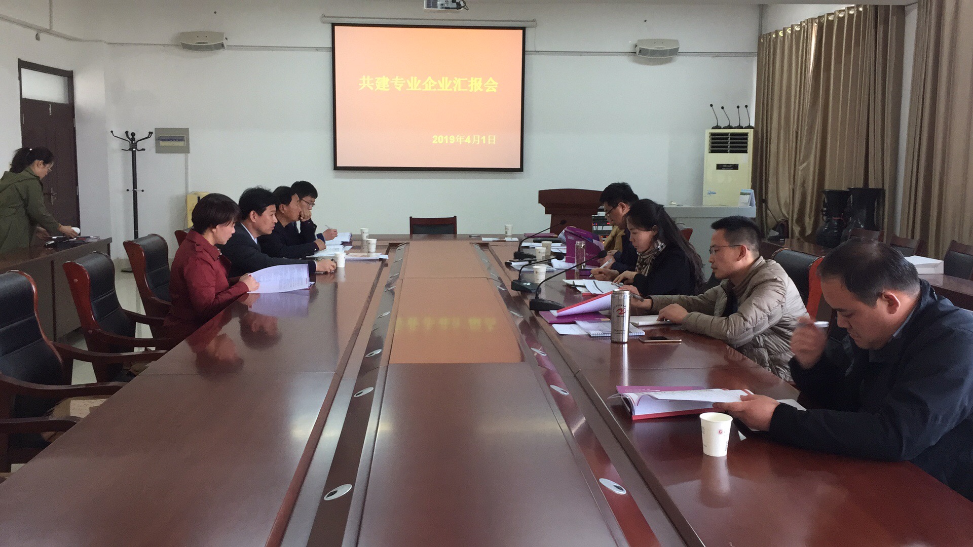 2019年4月1日下午,北京大爱幼教集团、北京东方蒙特梭利信息科学研究院、中企创优集团、摩尔精英公司、大唐国际、中企润林控股集团、联想教育科技(北京)有限公司一同来我校召开共建专业企业汇报会,我校吴院长,招生就业处时主任、仲主任、华主任、杨老师,人文学院岳院长、阚宝强院长、吕长东主任于知新楼301会议室陪同座谈。