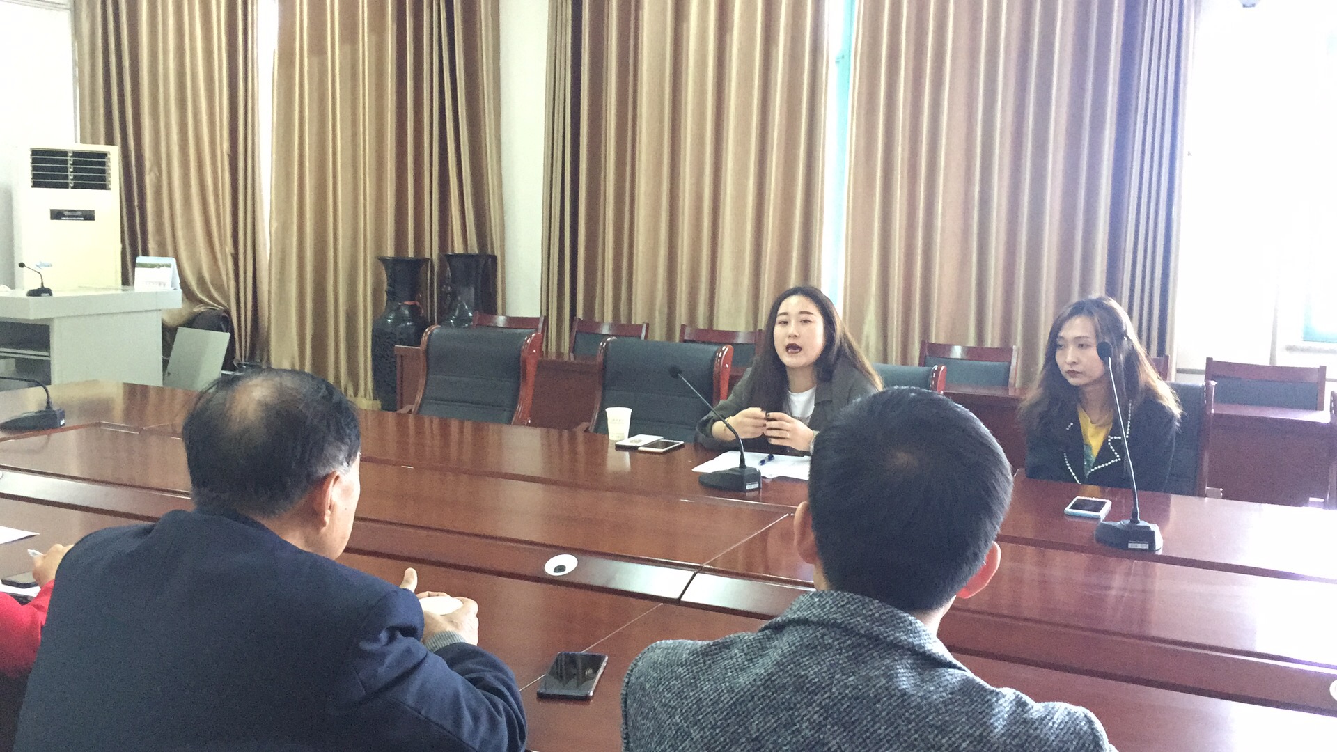2019年3月21日,北京新天亿教育集团邓经理一行二人来我校洽谈学前教育专业见习事宜,我校就业办华主任,人文学院教学院长岳院长、行政院长阚宝强、就业主任吕长东、办公室主任于瑛、教学秘书尹红霞等人于知新楼301会议室陪同座谈。