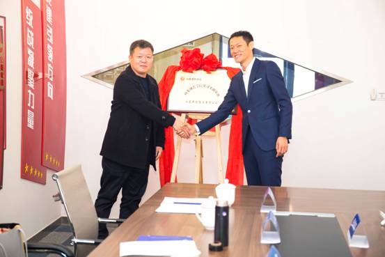在一片热烈的气氛当中,房董事长和吴院助共同对山东现代学院校外实习基地揭牌。