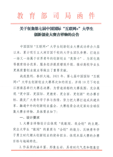 转发”关于征集第七届中国国际互联网+大学生创新创业大赛吉祥物的公告“