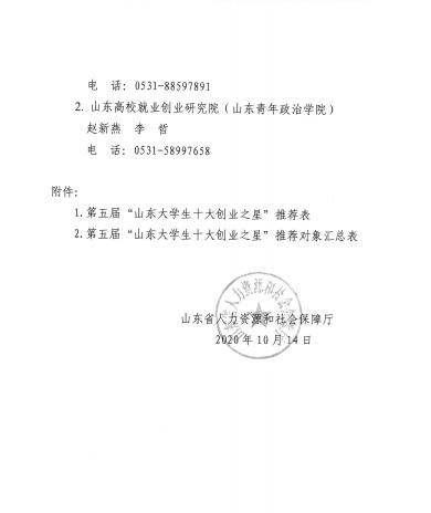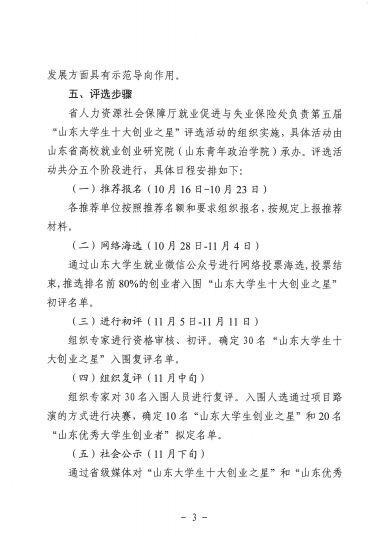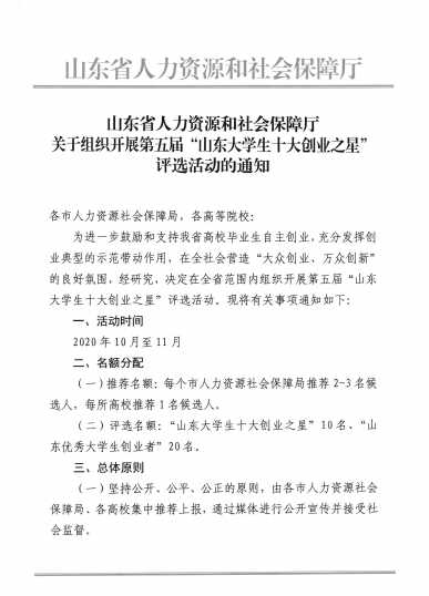 转发”山东省人力资源和社会保障厅关于组织开展第五届 “山东大学生十大创业之星” 评选活动“的通知