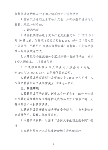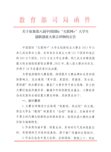 关于征集第八届中国国际“互联网+”大学生创新创业大赛吉祥物的公告