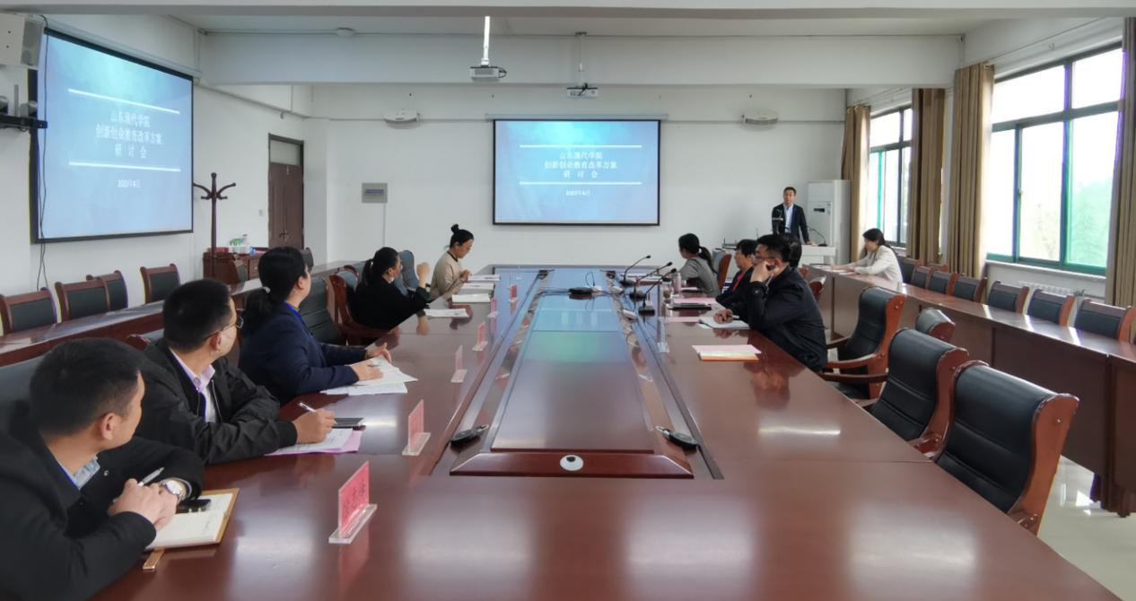 首先,由工学院学管就业院长阚保强汇报创新创业教育工作进展情况及《山东现代学院创新创业教育改革方案》。
