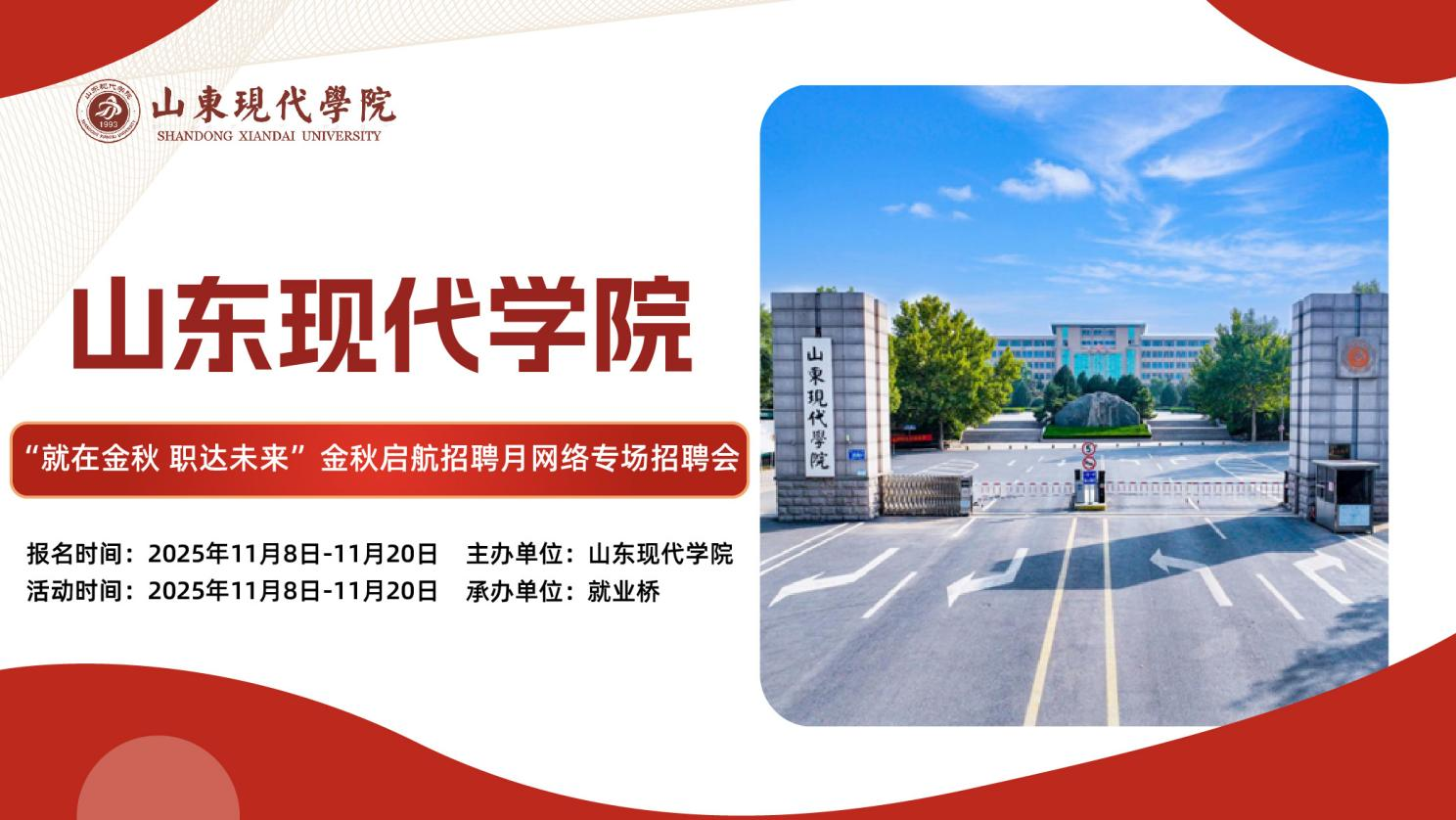 为深入贯彻落实党中央、国务院关于高校毕业生就业工作的决策部署,积极响应教育部2026届全国高校毕业生“金秋启航”校园招聘月活动要求,我校定于2025年11月8日至20日举办“就在金秋 职达未来”山东现代学院网络专场招聘会。现将有关事项通知如下: